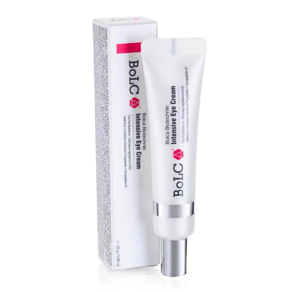 La BoLCA+ Biotechnie Intensive Eye Cream est une crème contour des yeux formulée avec des peptides, des extraits botaniques et un polypeptide spécifique, le Methionyl r-Clostridium Botulinum Polypeptide-1 Hexapeptide-40, destinée à nourrir et revitaliser la peau du contour des yeux.