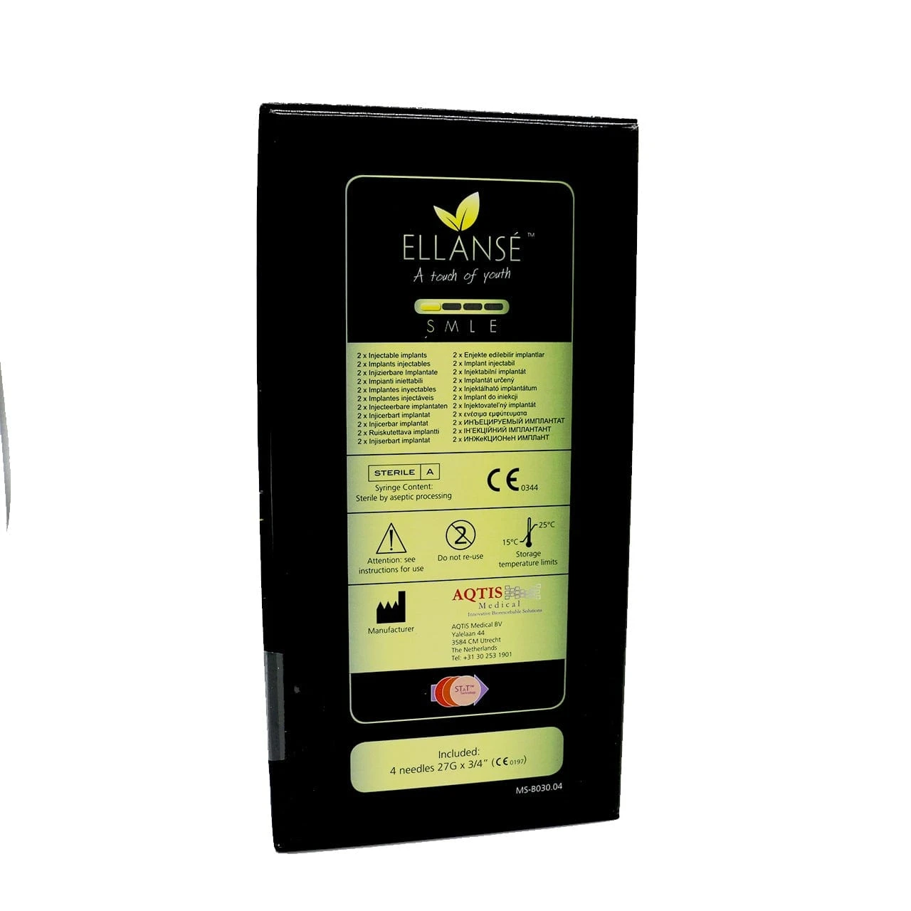 ELLANSÉ est un implant non permanent stérile sans latex, apyrogène, et totalement résorbable, composé principalement de microsphères de poly-ε-caprolactone (PCL) synthétiques en suspension dans un gel porteur composé de tampon phosphate salin (Ph. Eur.), glycérine (Ph. Eur.) et carboxyméthylcellulose (USP). La PCL est un polymère médical souple et résorbable, utilisé dans de nombreux produits résorbables commercialisés avec le marquage CE et autorisé par la Food and Drug Administration (FDA) depuis plusieurs décennies. La taille des particules d’ELLANSÉ est de 25 à 50 microns et doit être injectée avec une aiguille 27G.