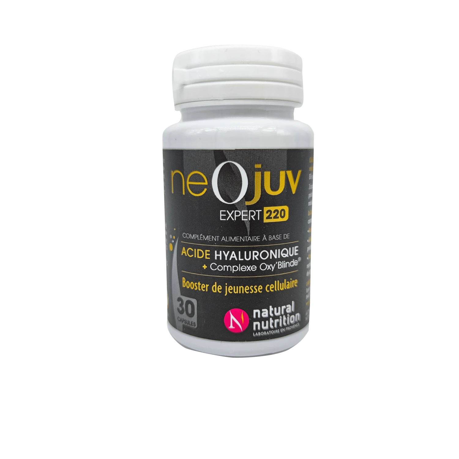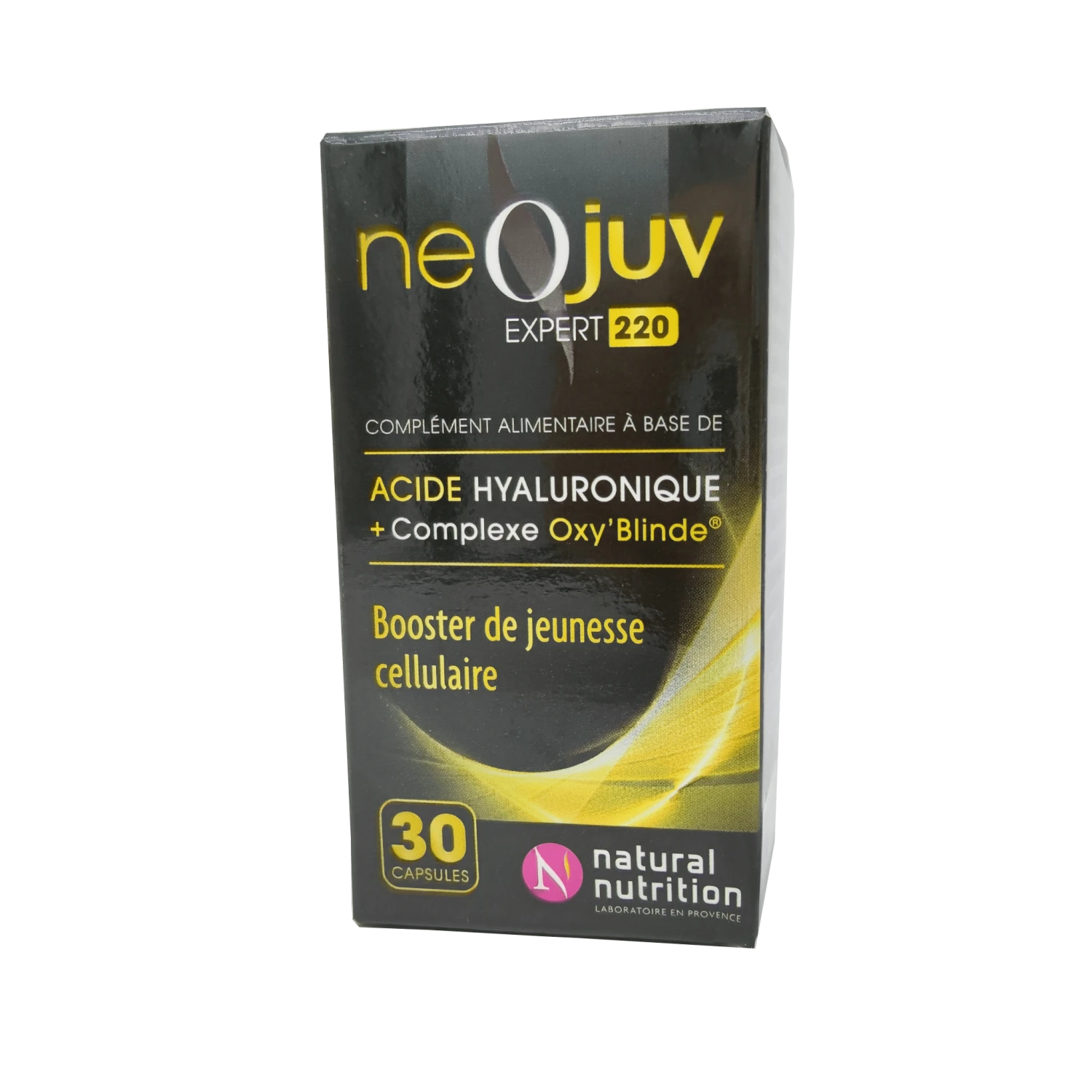 Neojuv expert est un complĂ©ment alimentaire Ă base d’acide hyaluronique et d’un complexe Oxy’Blinde. Il contribue Ă l’apport en nutriments favorables Ă la santĂ© de la peau.
