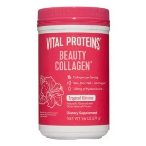 Le Vital Proteins Beauty Collagen de 271 grammes est un complément alimentaire sous forme de poudre contenant des peptides de collagène, de l’acide hyaluronique et des probiotiques. Ce produit est destiné à soutenir la santé de la peau, des cheveux et des ongles en apportant des nutriments spécifiques qui contribuent à leur entretien.
