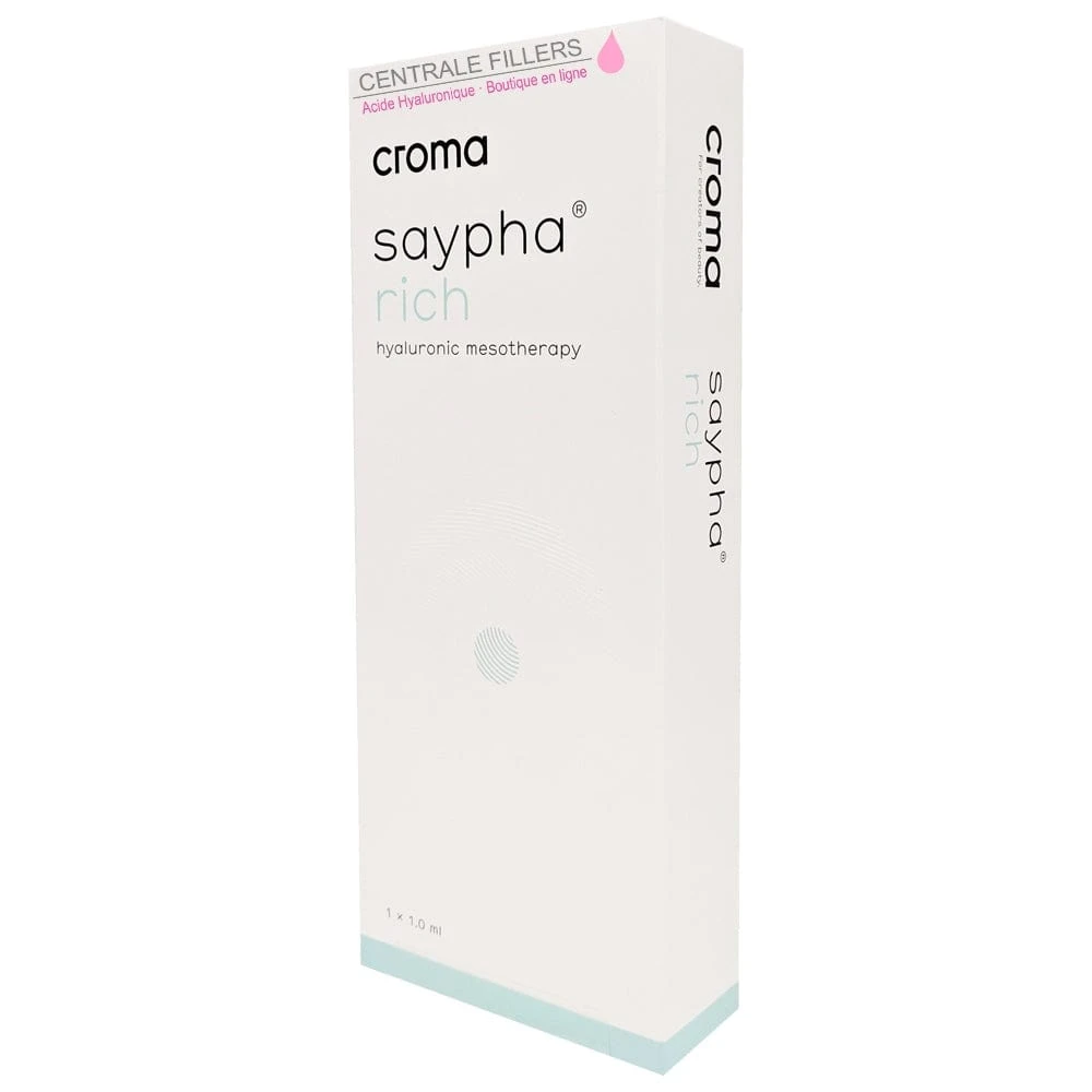 Développé par les laboratoires Croma, le produit Saypha Rich est un dispositif utilisé en mésothérapie. Il contient de l’acide hyaluronique à haute concentration, destiné à améliorer l’hydratation de la peau et à atténuer les ridules. Ce produit est classé parmi les skin boosters.