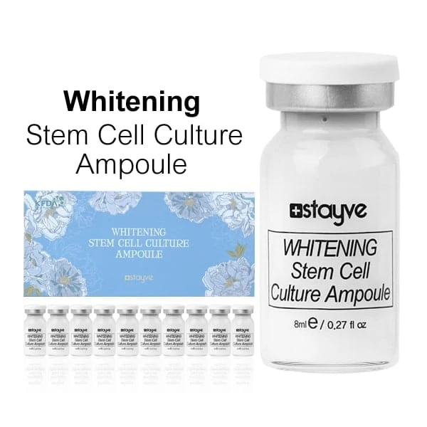 Le produit STAYVE Whitening Stem Cell Culture contient des cellules souches végétales, des peptides, de l’adénosine et du niacinamide. Il est formulé pour aider à réduire l’apparence des rides, éclaircir le teint et lisser la peau.